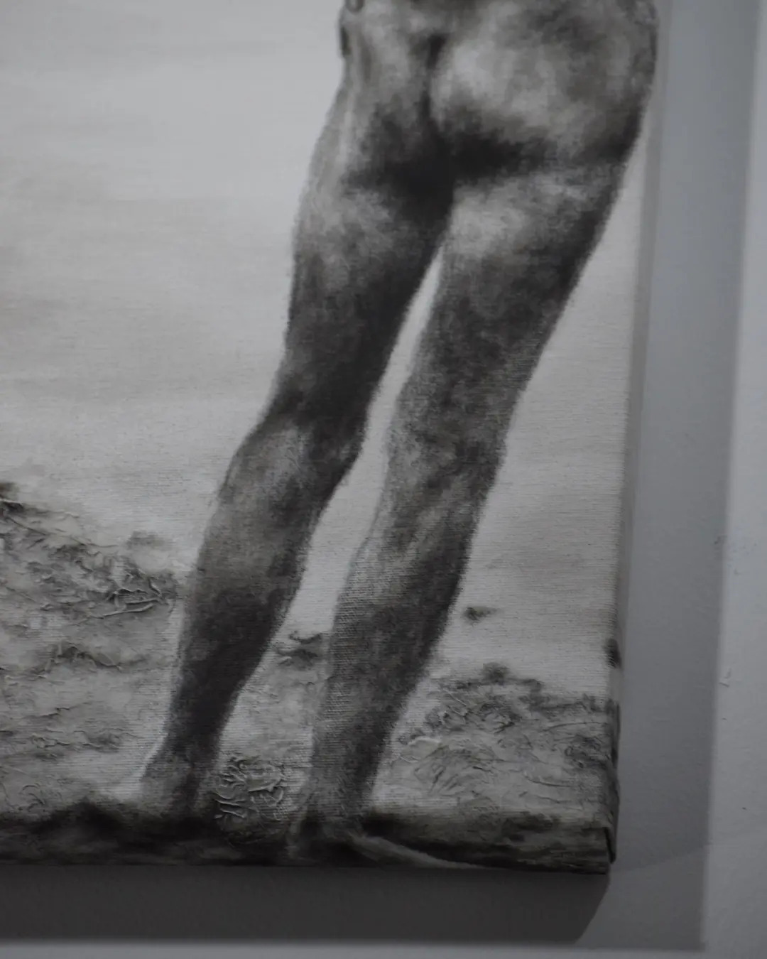 El gesto se concentra en elementos mínimos: una mano que duda, una postura que se protege. Es en esos desplazamientos sutiles donde la obra sostiene su carga emocional.